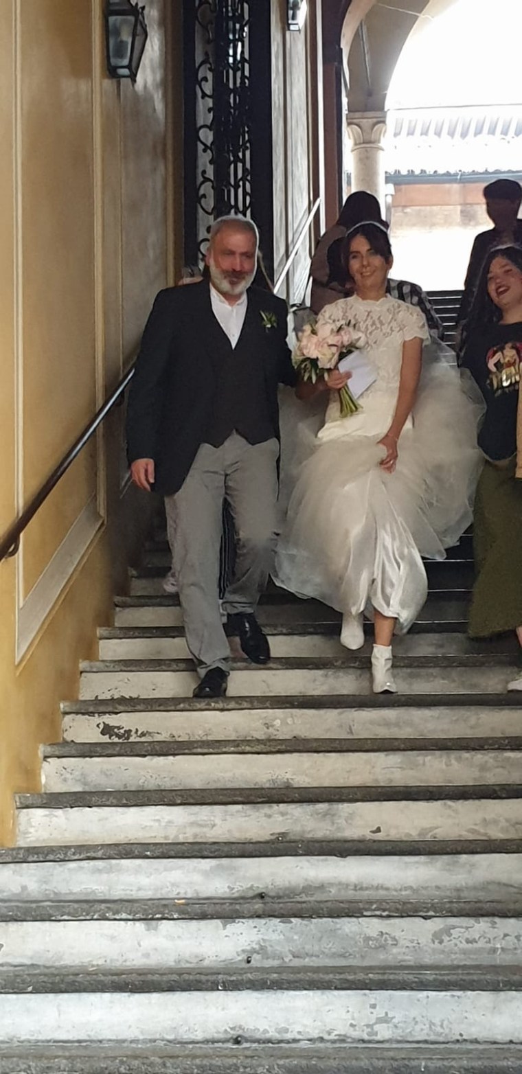Scendere lo scalone a braccetto con Massi e con Benny, Lety e Giuli attaccate allo strascico con la scusa di tenermelo su, secondo me si sono viste anche le mutande, è stupendo. La pioggia di riso e petali anche. Massi rideva mentre ce li tiravano ma aveva la bocca troppo aperta e ha iniziato a strangozzare perché ha ingoiato diversi chicchi.